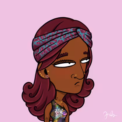 Collection Depressed Citizens Artist Juls Description ART. No team, no project, no future. Depressed Citizens is an urban & existential Art expression on Ordinals. In a parallel universe, "THEI" control us. DC unites against toxic society, encouraging critical thinking. 100% hand made collection that took Juls more than 6 months of daily work. Name Citizen#3074 Origin African descendant Gender Woman Necklace Gold layered necklace Hat Printed headband Mustache Beard No beard Glasses No Glasses Earrings Tragus star earring Hair Style Long wavy Clothes Love is love one shoulder crop Tattoo Rose tattoo Star Background Without stars
