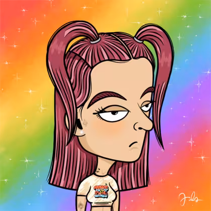 Collection Depressed Citizens Artist Juls Description ART. No team, no project, no future. Depressed Citizens is an urban & existential Art expression on Ordinals. In a parallel universe, "THEI" control us. DC unites against toxic society, encouraging critical thinking. 100% hand made collection that took Juls more than 6 months of daily work. Name Citizen#529 Origin LGBT-Q+ Gender Non-binary Necklace No Necklace Hat No Hat Mustache Beard No beard Glasses No Glasses Earrings Diamond earring Hair Style Long straight with space ponytails Clothes Take it easy crop top Tattoo Rose tattoo Star Background With stars